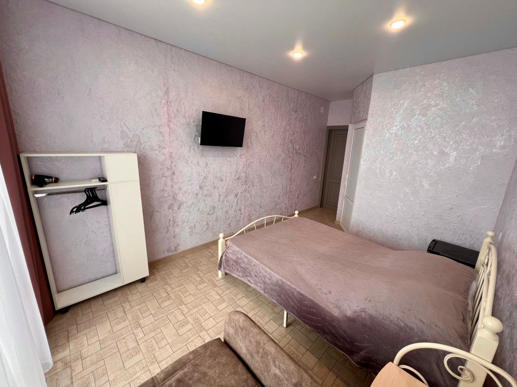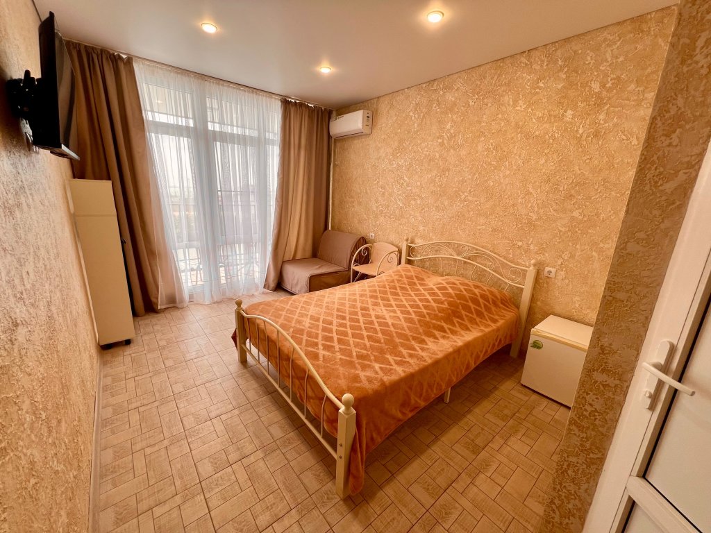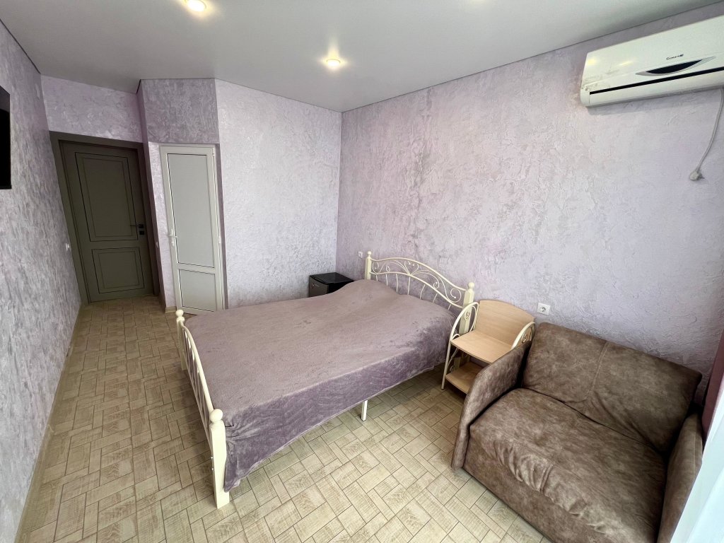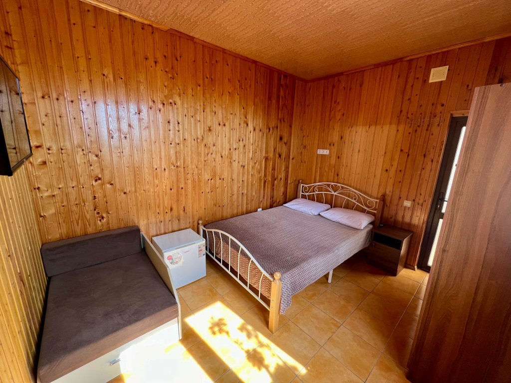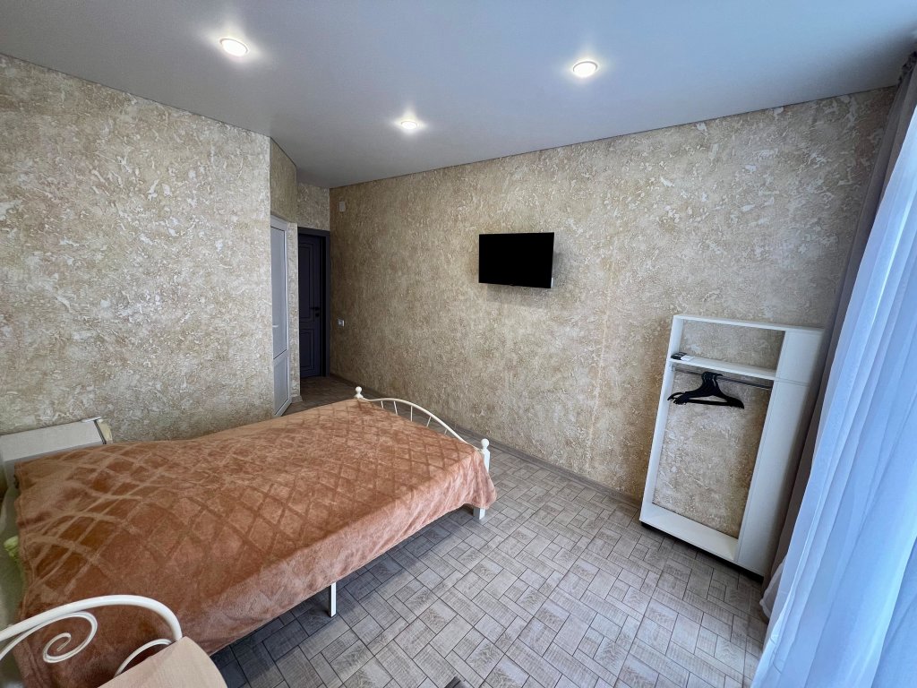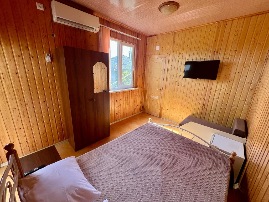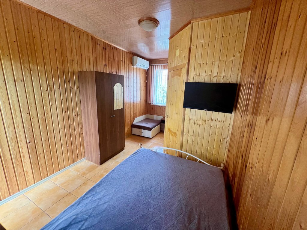 Однокомнатный номер расположен на 1 этаже, состоит из спальни с двуспальной кровать, санузла с душем. В числе удобств - Wi-Fi, сплит система, телевизор, холодильник. Вид во двор.