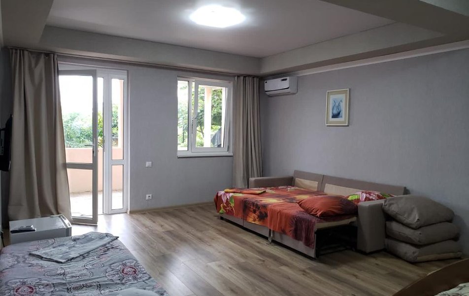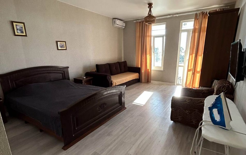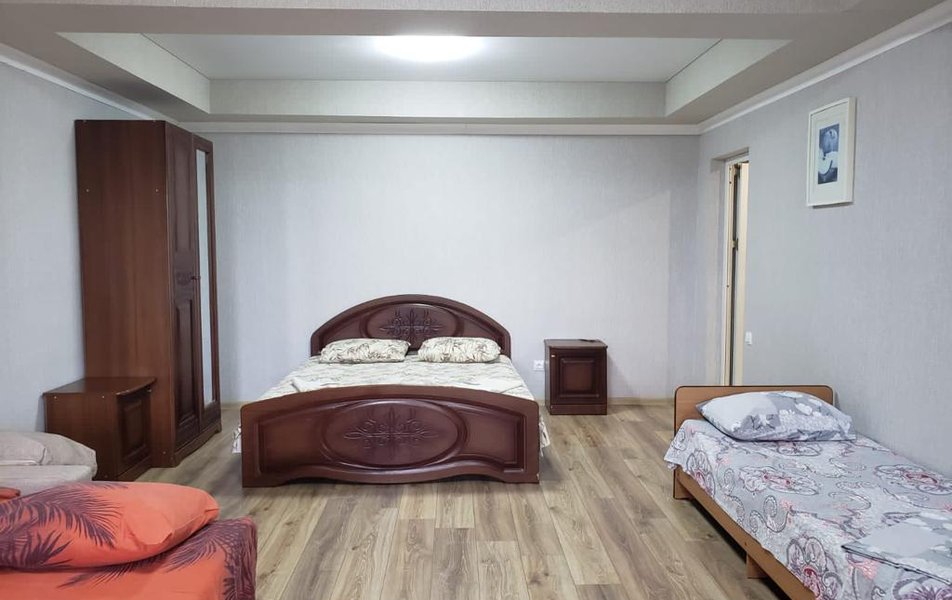 Семейный номер включает ванную комнату с душем, спальню с двуспальной кроватью и двуспальным диваном. Среди удобств кондиционер, телевизор, холодильник. В числе прочих удобств шкаф, тумба, стол, стулья, чайник, утюг и гладильная доска.