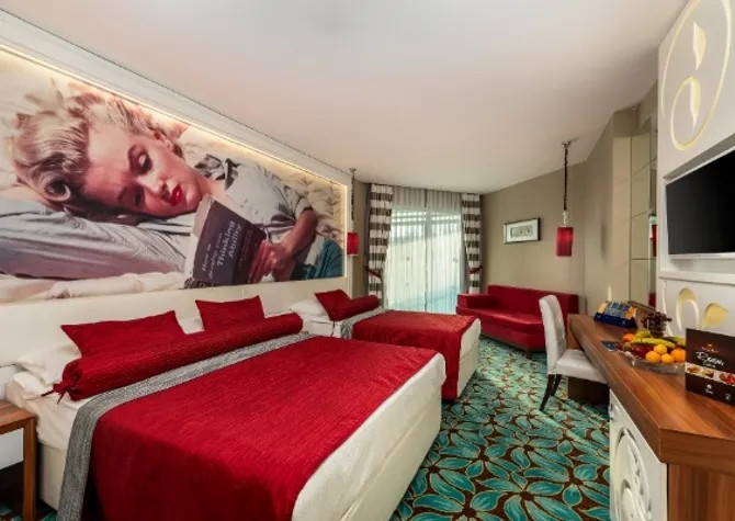 Это самый ужасный отель! Когда мы заселились в номер, там были одеяла и гель для душа. Ковер грязный, весь испачканный. Еда отвратительная, я взял рыбу на гриле, она была гнилая, запах был ужасный! Каждый день одни и те же дети ели только фастфуд из другой пищи не было тортов просто пластиковый безвкусный нет вкуса! Здесь нет фруктов, арбузов, дынь, клубники, вообще ничего, только яблоки, апельсины, мандарины и бананы. В главном ресторане не было тарелок и вилок все время, нужно было ждать, когда они принесут тарелки, они постоянно были грязными и жирными, нужно было перебирать кучу посуды, чтобы найти тарелку и чистую вилку. в барах это воняет дешевым алкоголем типа , Запах "грязного" алкоголя - стеллажи всегда липкие и грязные. На пляже, в баре, где угол - курица - Мыши бегают, а на крыше тоже были мыши, это просто ужасно. В пляжном ресторане всегда не было столовых приборов, а блюда были все грязные и жирные. Люди просто стояли в ожидании вилки и ели руками. Большое количество русских людей невежливы, которые никогда не видели еду и алкоголь. Все подталкивают к тому, чтобы кричать и материться. В ресторанах просто набегают на еду и толкают всех, даже детей! Кофейные машины не работают постоянно! Сауна в очень плачевном состоянии работала только 2 из 3 и постоянно выключалась из одной в другую! Персонал отеля груб и груб, они не понимают по-английски! Они хотят, чтобы все говорили по-русски! Женщинам в этом отеле небезопасно быть оскорбленными, а охране все равно! Развлечение просто ужасное, детская дискотека - это одно и то же. Шоу совсем не интересное! Невозможно спать рано утром, уборщица постоянно кричит, и они входят в комнату!! Этот отель не 5 звезд, этот отель должен быть дан - 0 звезд! ! Это худший испорченный отпуск! Я никому не рекомендую!